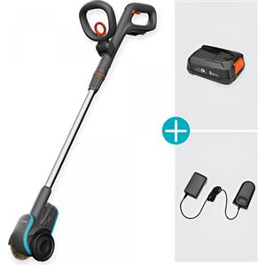 Gardena EasyWeed 1800/18V P4A - Spazzatrice elettrica per erba infestante a batteria ricaricabile con spazzola in filo d'acciaio, 18V 2Ah