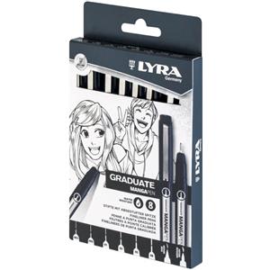 Lyra Set di 8 Penne Graduate Mangapen a Punta Sintetica con Astuccio Appendibile