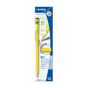 Lyra Matita di Grafite Temagraph 2B - Conf. 12 Pezzi, Corpo Esagonale, Mina Extra Resistente, Certificato PEFC in Scuola e Cancelleria