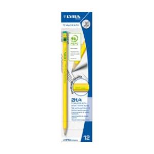 Lyra Matita di Grafite Temagraph 2H - Scatola da 12 Pezzi, Corpo Esagonale Verniciato Giallo