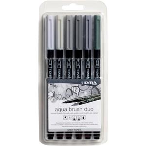 Lyra Aqua Brush Duo - Set di 6 Pennarelli a Doppia Punta in Toni di Grigio, Acquerellabili e Miscelabili
