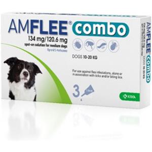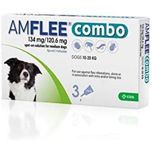 Amflee Spot-On Antiparassitario per Cani - 3 Pipette da 1,34 ml per Cani da 10 a 20 Kg, Contiene Fipronil in Articoli per Veterinaria