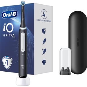 Oral-B Spazzolino Elettrico Ricaricabile iO 4N, Sensore di Pressione, Connessione Bluetooth, 4 Modalità di Spazzolamento, 1 Testina, 1 Spazzolino, 1 Custodia da Viaggio, Nero, Idea Regalo