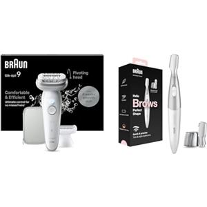 Braun Silk-épil 9 Depilatore Donna, Epilatore Elettrico Donna + Braun Mini Rifinitore Di Precisione FG1106 Per Sopracciglia e Linea Bikini