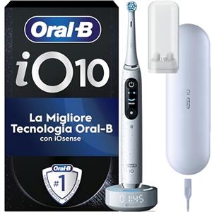 Oral-B Spazzolino Elettrico Ricaricabile iO 10 Bianco, 1 Spazzolino Elettrico, 1 Testine di Ricambio, Custodia Da Viaggio Ricaricabile, iO 10, Pulizia Denti, Sensore di Pressione, Gengive Protette