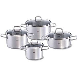 Fissler Pure Collection - Set di 4 pentole in acciaio inox con coperchi in vetro, compatibile induzione