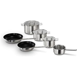 Bosch HEZ9SE060 Set di Pentole in Acciaio Inox, 6 Pezzi, Induzione, Spremibile in Lavastoviglie, Resistente al Forno
