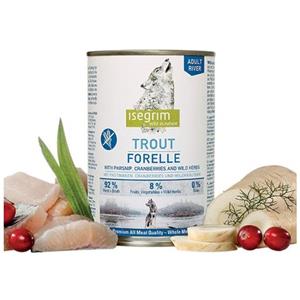 ISEGRIM Lattina Umida per Cani Adulti con Trota, Chirivia, Mirtilli ed Erbe Selvatiche - 400 g, Senza Cereali