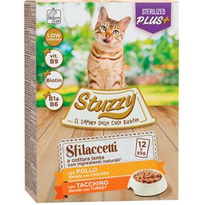 Stuzzy Sfilaccetti Sterilized con Pollo e Tacchino - Cibo Umido per Gatti - 12 Bustine da 85g con Ingredienti Naturali