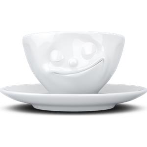 FiftyEight Tazza Kissing 200ml in Porcellana Bianca con Piattino, Adatta a Lavastoviglie e Microonde