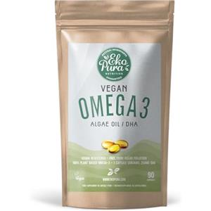 Ekopura Vegan Omega 3 - Olio di Alghe, 90 Capsule con 250mg DHA per Capsula, Sostenibile e Adatto a Vegani