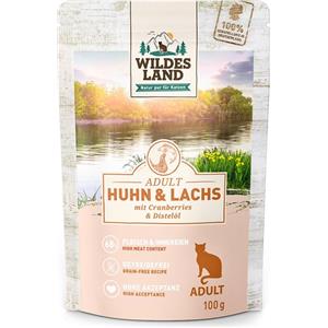 Wildes Land Cibo Umido per Gatti Classic Adult Pollo e Salmone con Olio di Cardamo 100 g - Senza Cereali