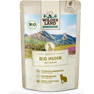 WILDES LAND - Cibo Umido per Gatti Bio al Pollo con Olio di Salmone - 12 Confezioni da 85g