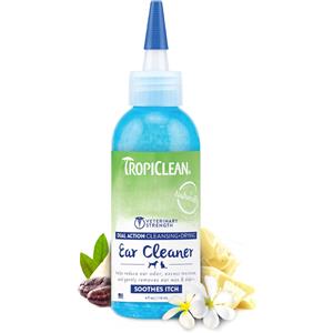 TropiClean Detergente Doppia Azione per Orecchie - 118 ml, Pulito & Asciutto, Riduce Odori e Previene Infezioni