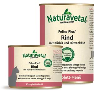 Naturavetal Felins Plus - Alimento Umido Completo per Gatti con Manzo, Verdure e Formaggio di Malga - 400 gr