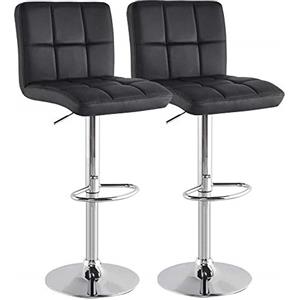 BAKAJI Set di 2 Sgabelli Alto da Bar in Ecopelle Nera con Schienale, Poggiapiedi e Base in Metallo Cromato, Altezza Regolabile