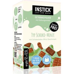 INSTICK Bevanda Istantanea Senza Zucchero al Gusto Cioccolato e Menta - 12 Bustine da 2g, Vegana e Basso Contenuto Calorico