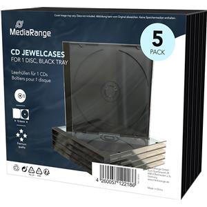 MediaRange Custodia Jewel Case 10,4mm per CD/DVD - 5 custodie Nero e Trasparente