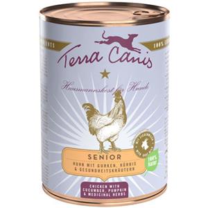 Terra Canis Senior Cibo Umido per Cani - Pollo con Cetriolo, Zucca ed Erbe Officinali - 400 g
