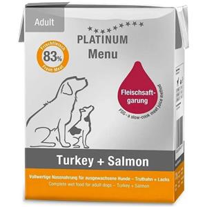 Platinum Menu Tacchino e Salmone 375g - Cibo Umido per Cani Adulto con 63% Carne di Tacchino