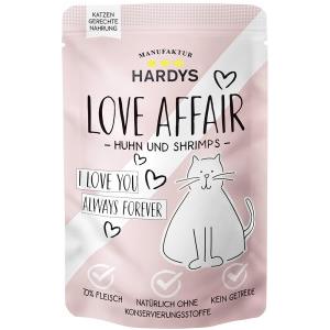 Hardys Love Affair Cibo Umido per Gatti - Pollo e Gamberetti, 65% Carne, Bustine da 100 g