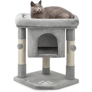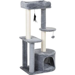 PawHut Tiragraffi ad Albero per Gatti 91cm con Cuccia e Cuscino Morbido Grigio, Pali in Corda Sisal Ø16.5 cm