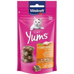 Vitakraft Cat Yums Snack per Gatti - Pollo e Erba Gatta, 40 g, Morbidi Bocconcini Ricchi di Carne, Senza Zuccheri e Cereali, Con Inulina