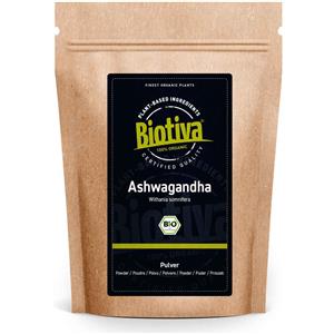BIOTIVA Ashwagandha in polvere biologica 250g - 100% pura, senza additivi, da coltivazione ecosostenibile