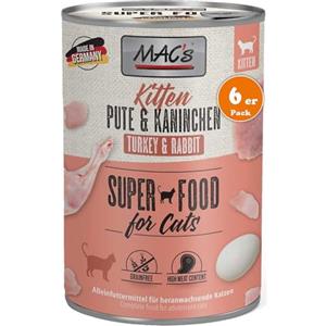 MAC's Cat Kitten Cibo Umido per Gatti 6 x 400 g - Tacchino e Coniglio, Senza Cereali, Alimento Completo e Bilanciato