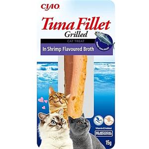 INABA Filetti di Tonno Grigliato per Gatti in Brodo di Gamberetti - Snack Ricco di Umidità e Antiossidanti, 15g