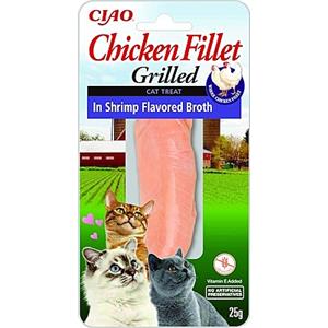 INABA Filetti di Pollo Grigliato per Gatti in Brodo di Gamberetti - Snack Ricco di Antiossidanti, 25g