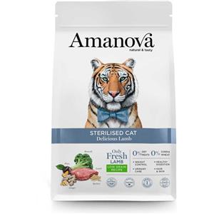 Amanova Cibo Secco per Gatti Sterilizzati all'Agnello - 1,5 Kg, Monoproteico e Low Grain