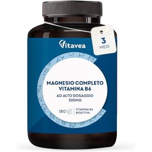 Vitavea Magnesio Bisglicinato - Integratore Completo con Vitamina B6 per Stress, Affaticamento e Crampi Muscolari - 300 mg per Dose Giornaliera - 180 Capsule Vegetali