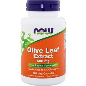 Now Foods Estratto di Foglie di Olivo 500 mg - 120 Capsule Vegetali con 6% di Oleuropeina per Supporto Immunitario e Antiossidanti