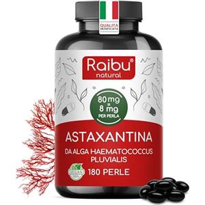 RAIBU Astaxantina Pura 80 mg - 180 Capsule Antiossidante Naturale Senza OGM