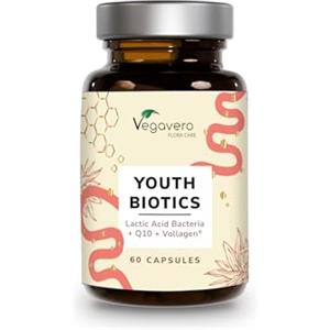 Vegavero Youth Biotics - Probiotici Vegan per Microbiota Intestinale e Salute della Pelle con Vitamina C, E, Coenzima Q-10 e Aminoacidi - 60 Capsule