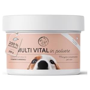 Annimally Vitamine per Cani - Complesso multivitaminico in polvere 200g con Erba d'orzo, Spirulina e Lievito di Birra, 100% Naturali