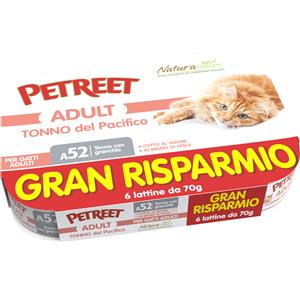 Petreet Cibo Umido per Gatti - Tonno del Pacifico con Granchio, Multipack 6x70g, Alta Qualità e Senza Conservanti