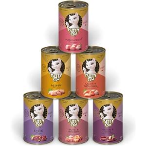 KITTY Cat Paté Mix 3 - Cibo umido per gatti senza cereali, con taurina, olio di salmone e cozze verdi, confezione da 6 x 400 g