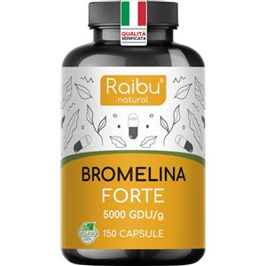 RAIBU Bromelina 2500 GDU/g - 150 Capsule Gastroresistenti - Enzima Digestivo Naturale da Ananas, Vegano e Senza Additivi in Integratori e Vitamine