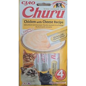 INABA Churu Snack Cremoso per Gatti al Pollo e Formaggio - Confezione da 4 Stick da 14g