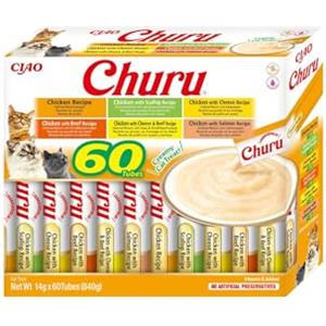INABA Churu Snack per Gatti - 60 Stick Cremosi al Pollo in 4 Varietà, Senza Conservanti e Grain-Free