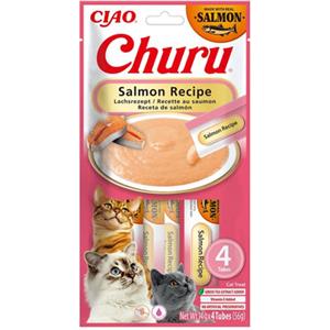 INABA Churu Snack per Gatti al Salmone - Crema da Leccare, 4 Stick da 14g, Senza Conservanti e Grain-Free