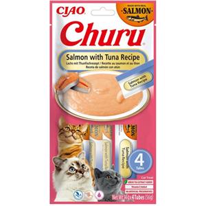 INABA Churu Snack Cremoso per Gatti al Salmone e Tonno - 4 Stick da 14g, Senza Conservanti e Grain-Free