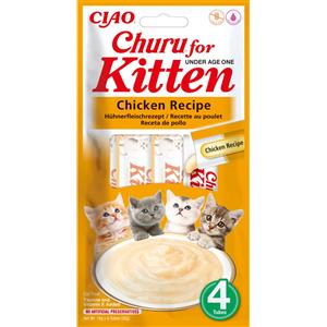 INABA Churu Kitten Snack Pollo - Snack Cremoso per Gattini con Taurina e Omega 3 e 6, 4 Stick da 14 g