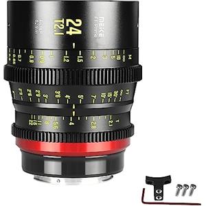Meike Obiettivo grandangolare a fuoco manuale Meike 24 mm T2.1 Full Frame per attacco Canon EF e videocamera cinematografica ZCAM E2-F6, E2-F8, Canon EOS C500 Mark II e S35 EOS C100 Mark II, EOS C200