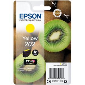 Epson Cartuccia d'Inchiostro Giallo C13T02F44010 202 - Claria Premium Ink, 4,1 ml, Resa Standard, 300 Pagine, Compatibile con XP-6000/6005/6100/6105