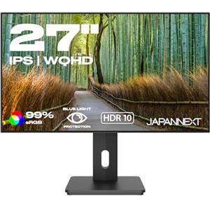 JAPANNEXT Monitor 27 IPS Frameless WQHD 2560x1440 | HDR | Altezza e inclinazione regolabili | Altoparlanti integrati | Flicker Free | G-Sync/FreeSync