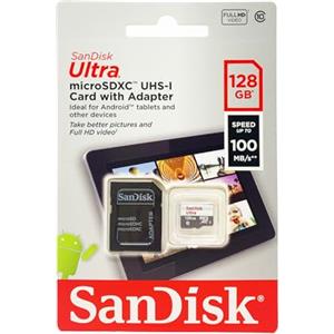 SanDisk Ultra microSDXC 128 GB con SD Adapter - Classe 10 UHS-I, 100 MB/s, Grigio/Rosso