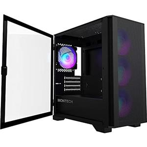 Montech AIR 100 ARGB Micro-ATX Tower con quattro ventole ARGB preinstallate, design ultra minimalista, pannello frontale a rete fine, flusso d'aria elevato, vetro temperato girevole laterale, nero